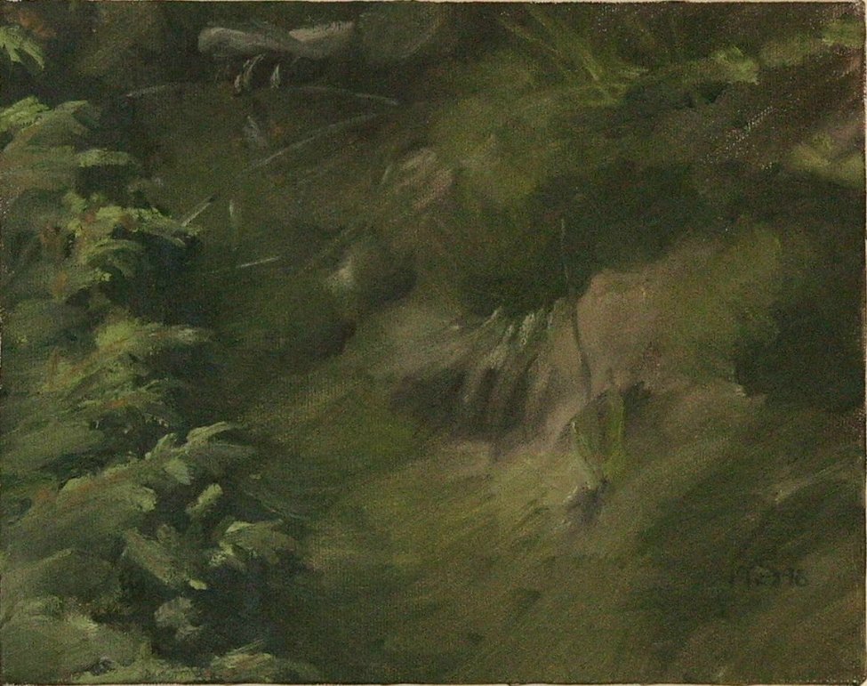 g r o u n d s c a p e|   | I have often been interested by what can be seen looking down at the ground. In these paintings I focus on a small patch of ground and its leaves or grass or flowers or rocks, terrain we always see, but seldom focus on. It's almost like a private world. This is a group of paintings particularly close to my heart. |