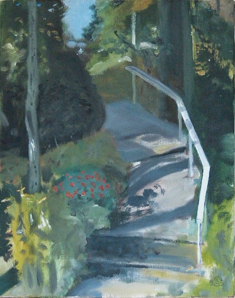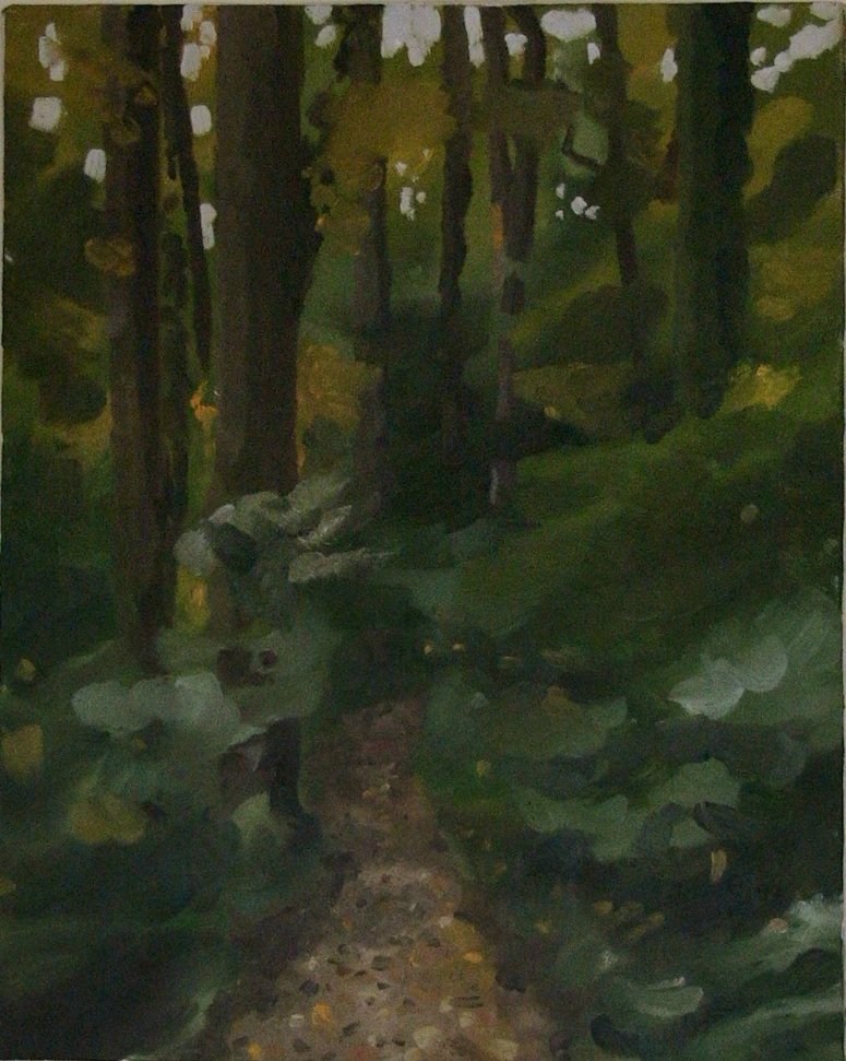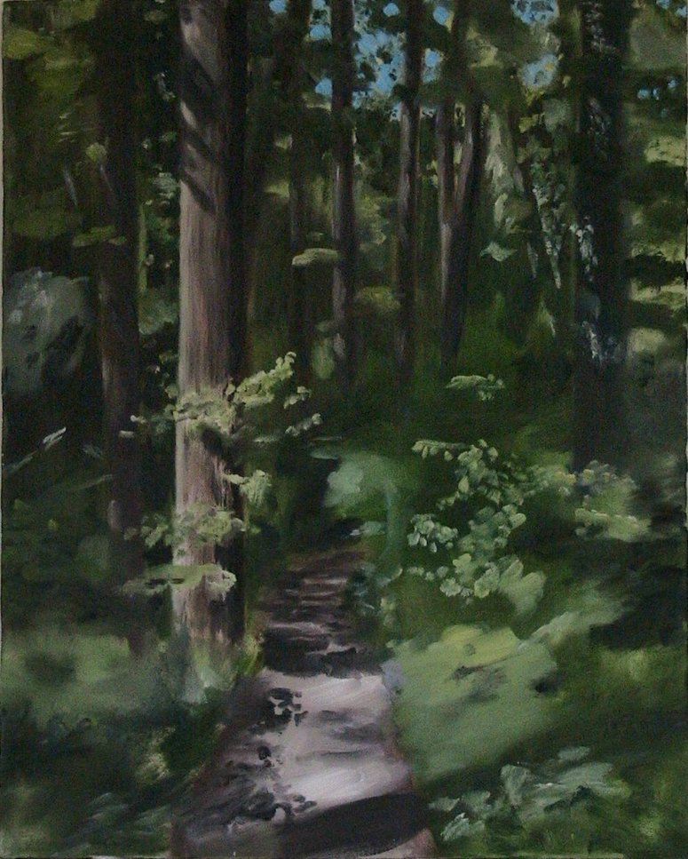 These landscape paintings are primarily of scenes in the Wisahickon, in Maine and in selected gardens. Usually I choose these subjects because I feel an intimate connection to a place and also because of what it may symbolize for me: the short-lived beauty of flowers, the old memories of trees, the softness and resilience of grasses, the cycles of seasons, and, more generally, the awareness of a class of beings whose language we barely know and who quietly observe us as we go by.