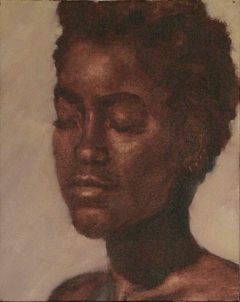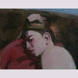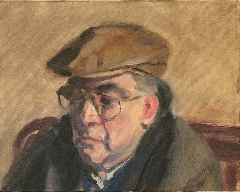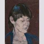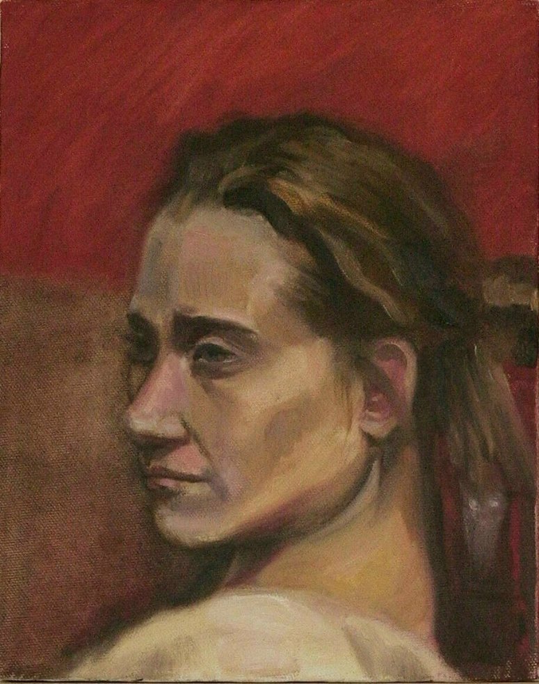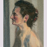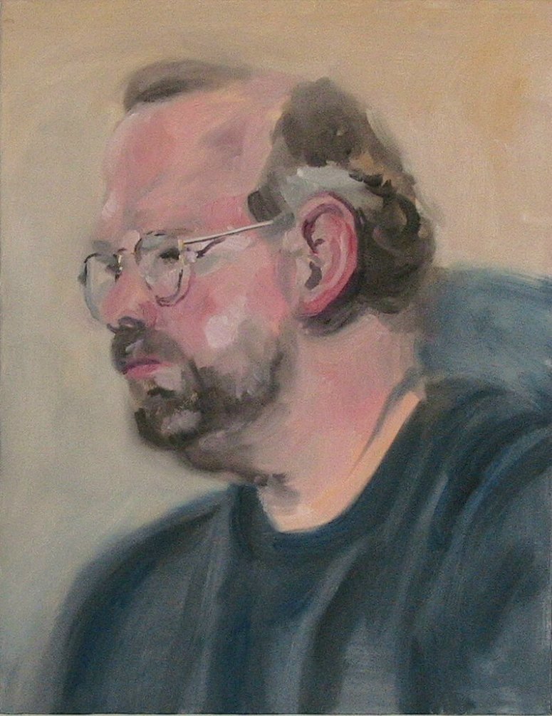 |   | My interest in portraits is related to the unique qualities brought out by the process of painting from life. Most of the portraits below were painted over a period of about 3 hours. This is a long enough time that all the fleeting expressions in a person's face pass, and what is left is a kind of core expression - something that  cannot be removed. For this reason, a portrait painted from life shows a very different expression of a person than does a photograph. It can be likened, conceptually, to a photograph in which the shutter is left open for hours. It's because of this that portraits painted from life tend to look contemplative or serious. Indeed, smiling portraits are rarely found and are even more rarely satisfying, because a smile is transitory and, without having deliberately understood, we know from experience that a painted portrait properly conveys something else, something permanent. Of the portraits below, only the portrait of Dutch, the golden retriever, was painted with a photograph. It does not condemn a portrait to failure to use one, but nor does it exploit the genre's full potential. The size of these paintings range from 8x10 to 24x36, but most are not taller than 12". |