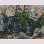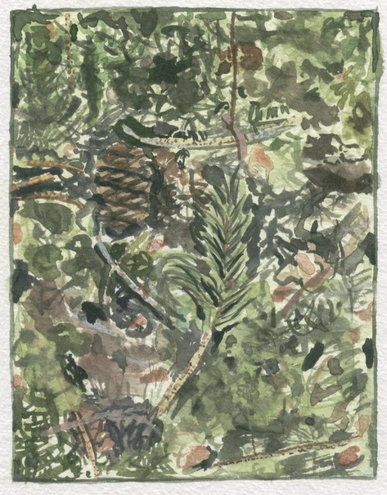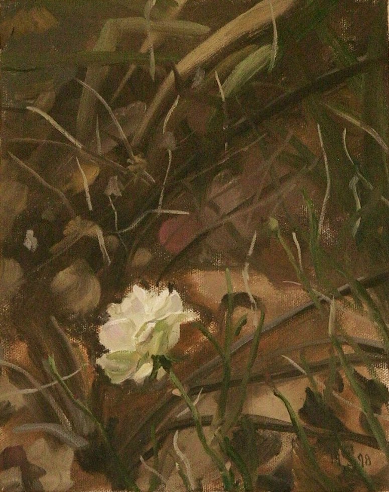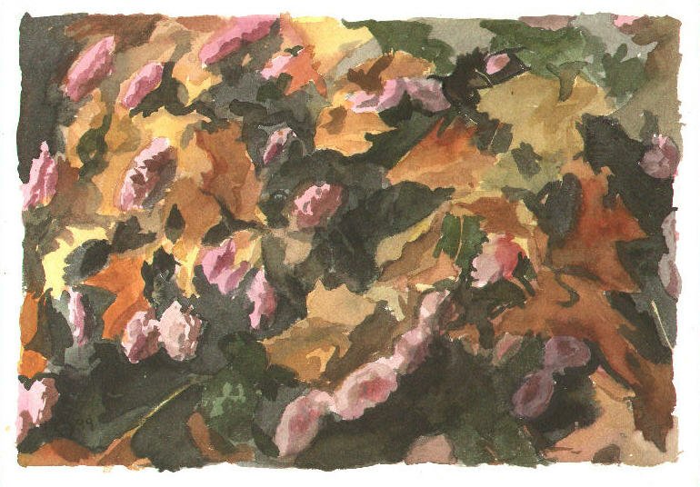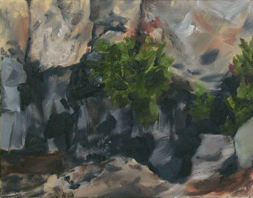 g r o u n d s c a p e|   | I have often been interested by what can be seen looking down at the ground. In these paintings I focus on a small patch of ground and its leaves or grass or flowers or rocks, terrain we always see, but seldom focus on. It's almost like a private world. This is a group of paintings particularly close to my heart. |