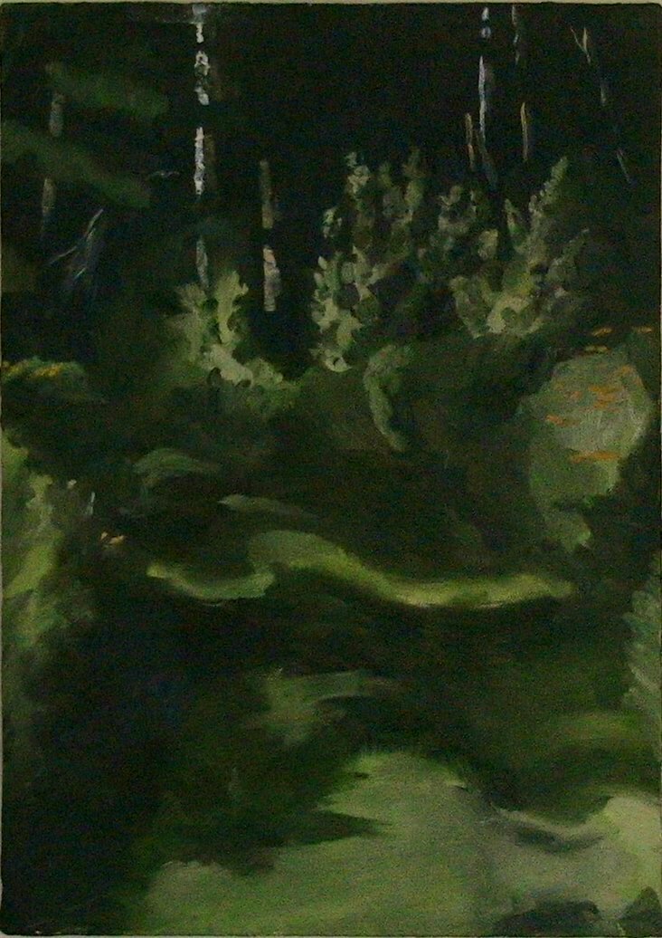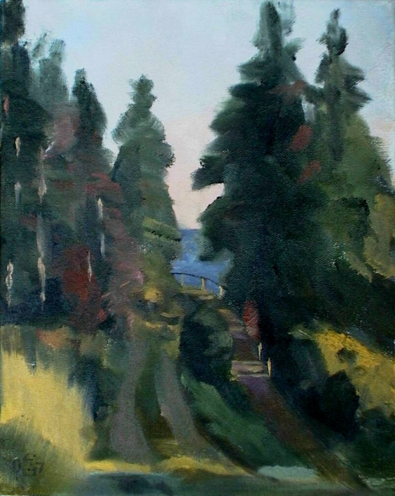 These landscape paintings are primarily of scenes in the Wisahickon, in Maine and in selected gardens. Usually I choose these subjects because I feel an intimate connection to a place and also because of what it may symbolize for me: the short-lived beauty of flowers, the old memories of trees, the softness and resilience of grasses, the cycles of seasons, and, more generally, the awareness of a class of beings whose language we barely know and who quietly observe us as we go by.