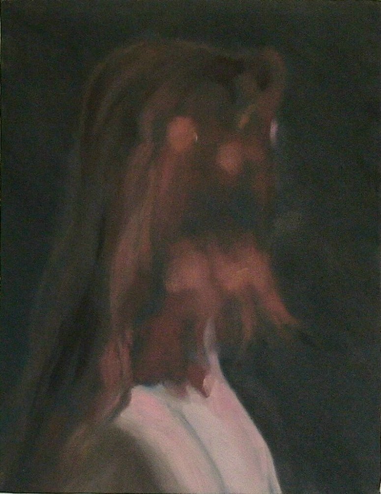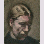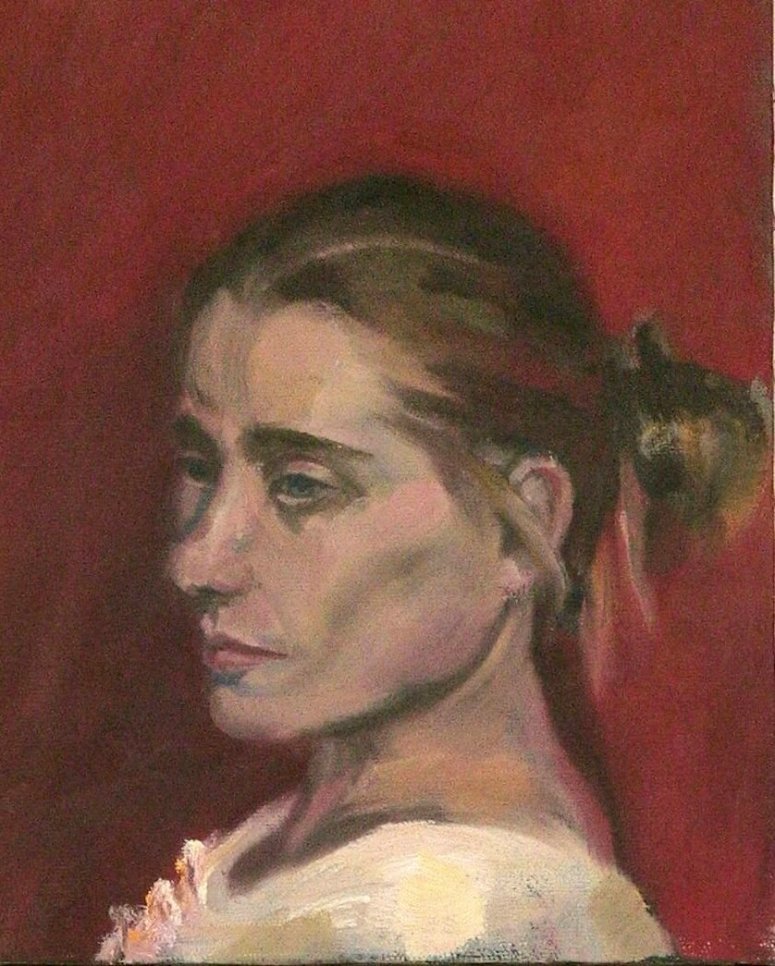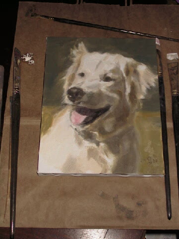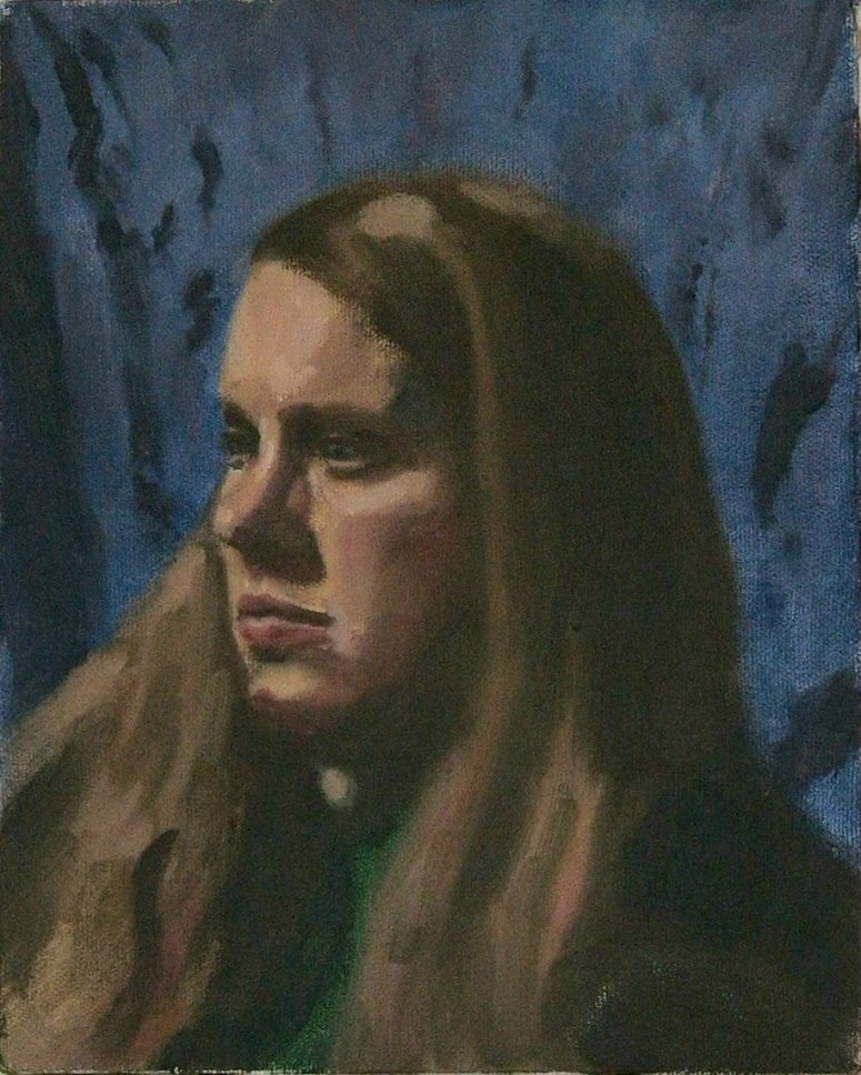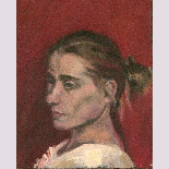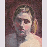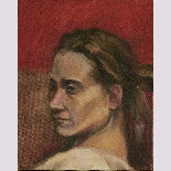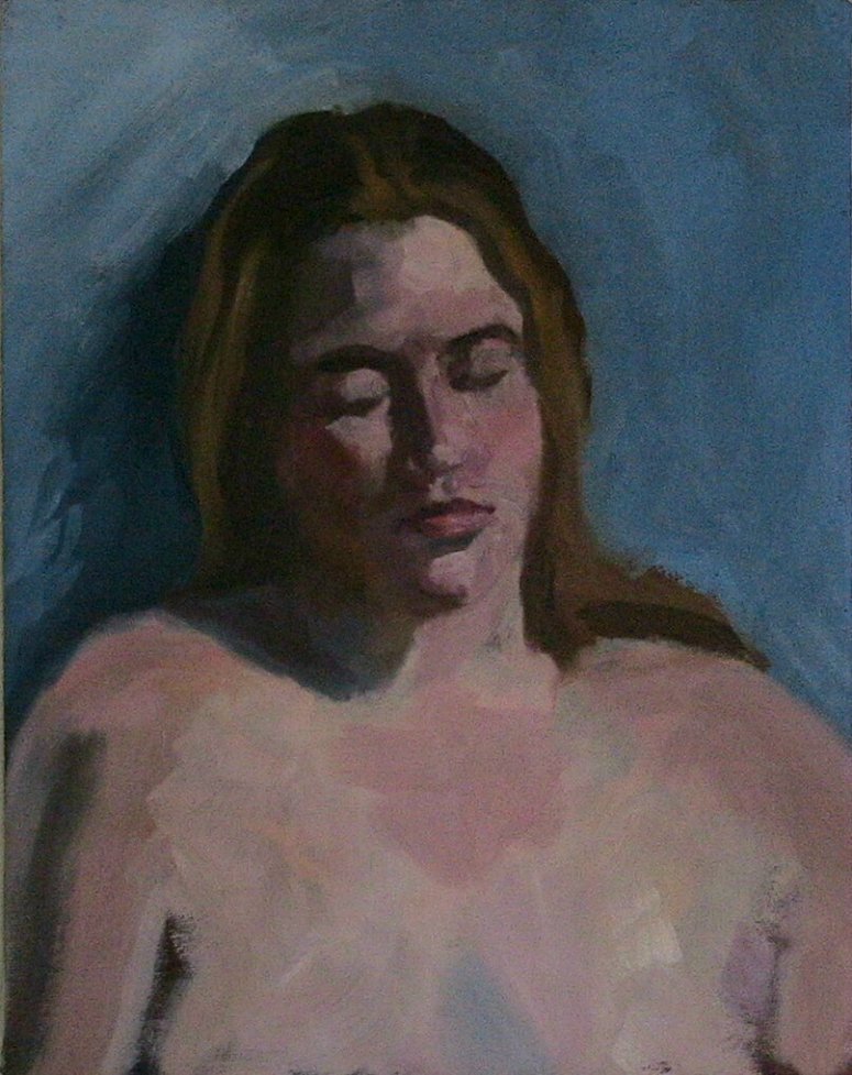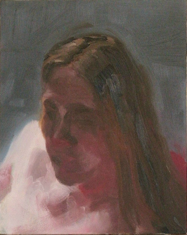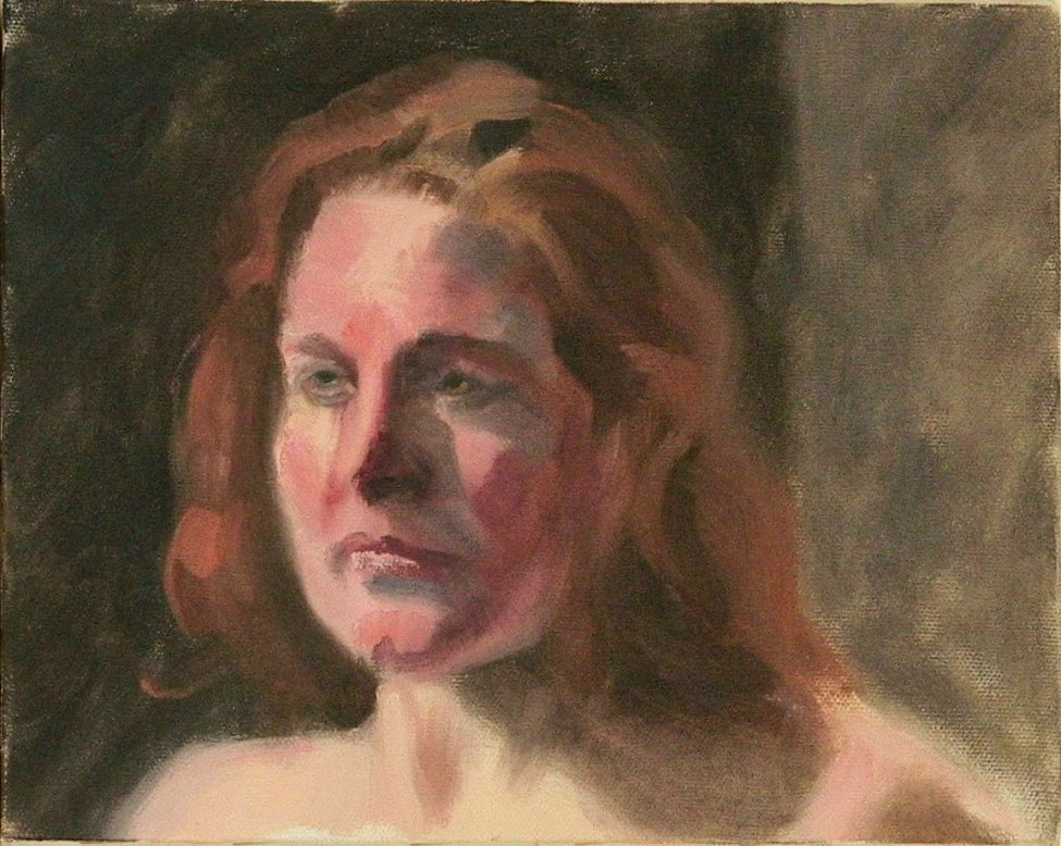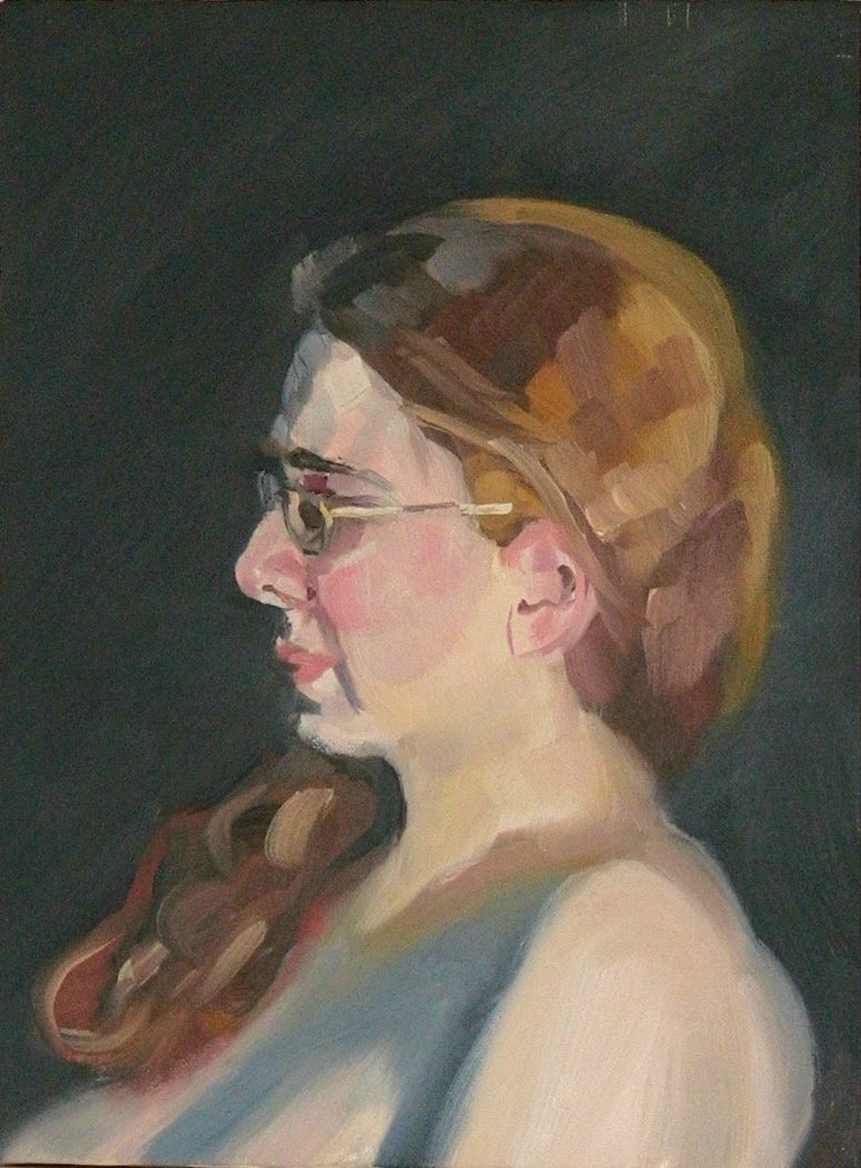 |   | My interest in portraits is related to the unique qualities brought out by the process of painting from life. Most of the portraits below were painted over a period of about 3 hours. This is a long enough time that all the fleeting expressions in a person's face pass, and what is left is a kind of core expression - something that  cannot be removed. For this reason, a portrait painted from life shows a very different expression of a person than does a photograph. It can be likened, conceptually, to a photograph in which the shutter is left open for hours. It's because of this that portraits painted from life tend to look contemplative or serious. Indeed, smiling portraits are rarely found and are even more rarely satisfying, because a smile is transitory and, without having deliberately understood, we know from experience that a painted portrait properly conveys something else, something permanent. Of the portraits below, only the portrait of Dutch, the golden retriever, was painted with a photograph. It does not condemn a portrait to failure to use one, but nor does it exploit the genre's full potential. The size of these paintings range from 8x10 to 24x36, but most are not taller than 12". |
