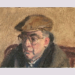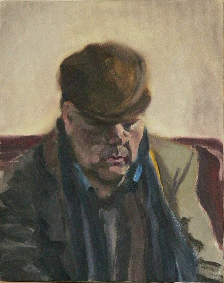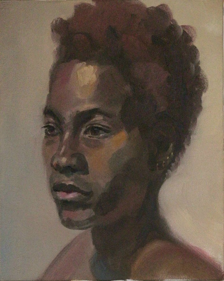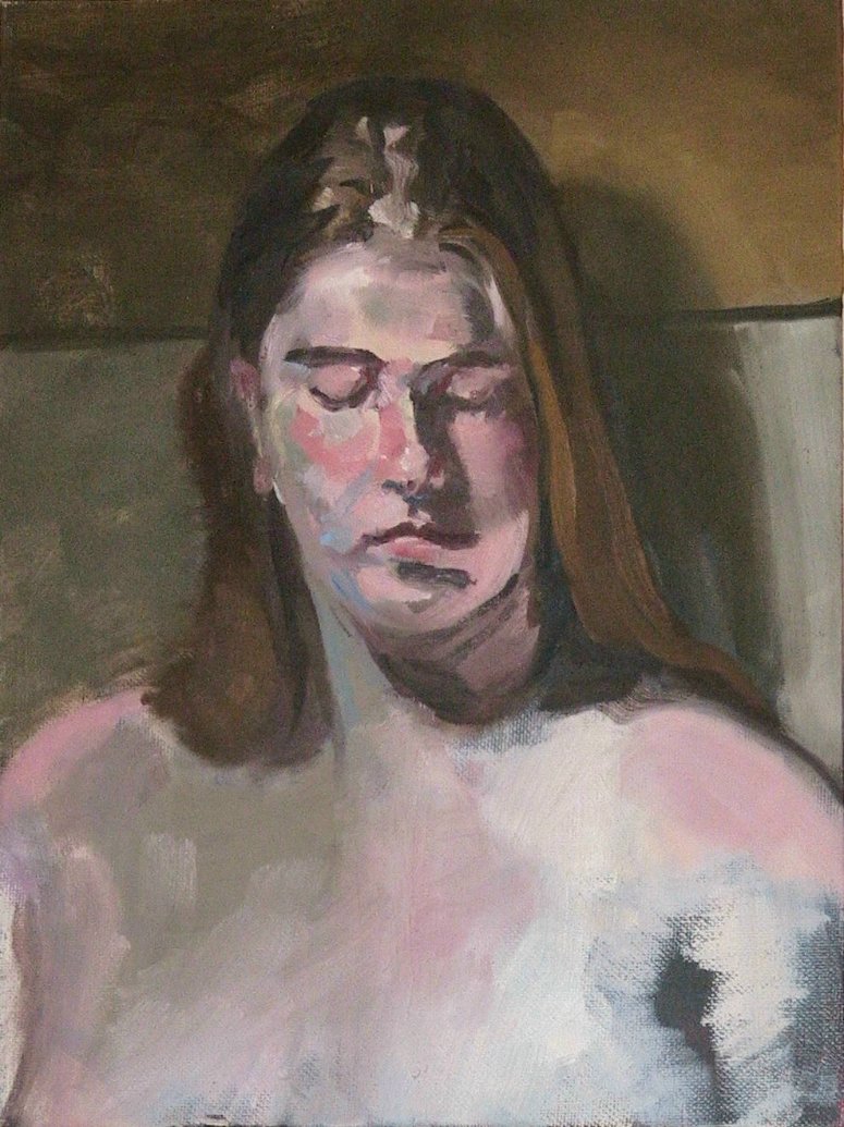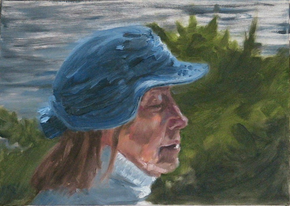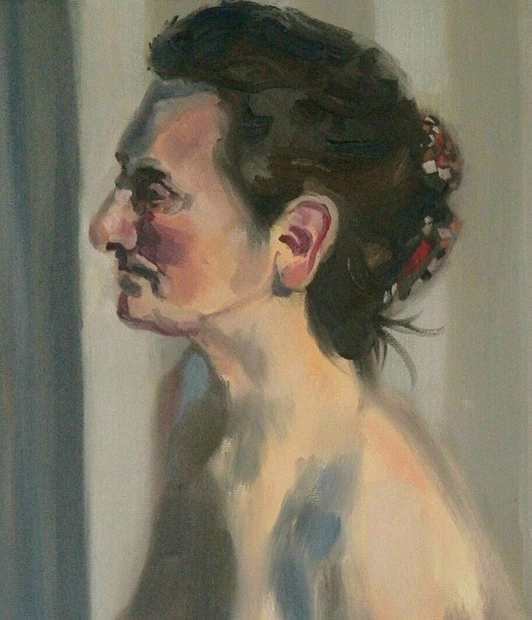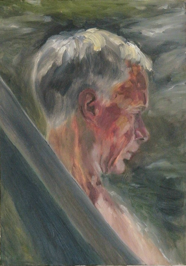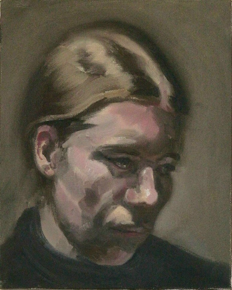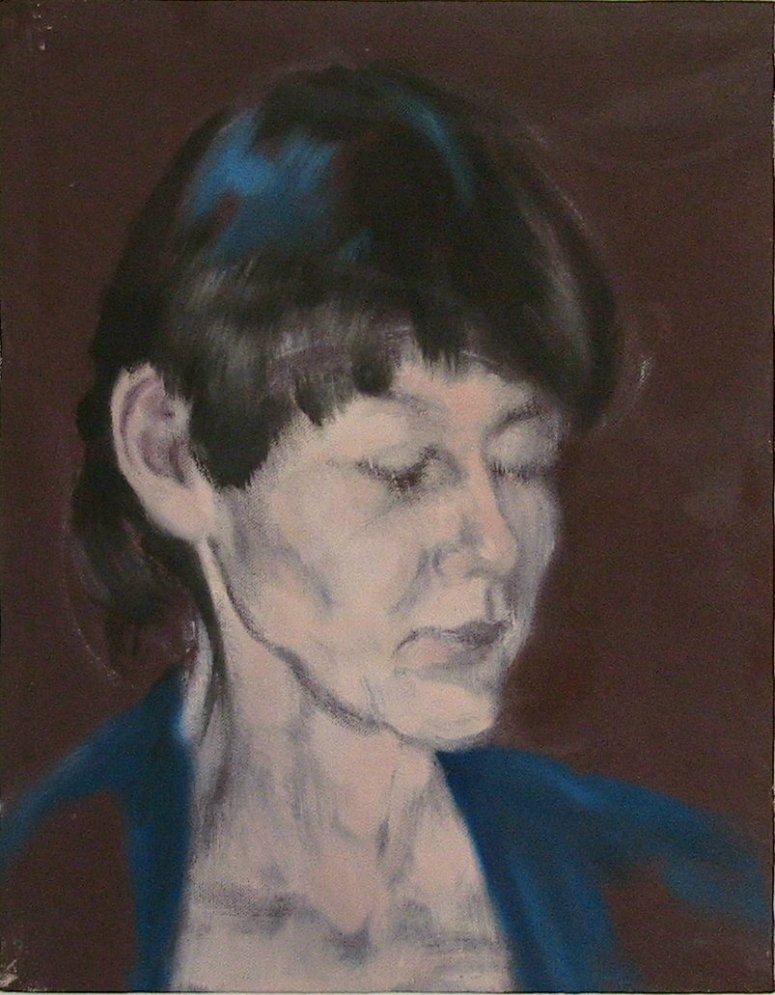|   | My interest in portraits is related to the unique qualities brought out by the process of painting from life. Most of the portraits below were painted over a period of about 3 hours. This is a long enough time that all the fleeting expressions in a person's face pass, and what is left is a kind of core expression - something that  cannot be removed. For this reason, a portrait painted from life shows a very different expression of a person than does a photograph. It can be likened, conceptually, to a photograph in which the shutter is left open for hours. It's because of this that portraits painted from life tend to look contemplative or serious. Indeed, smiling portraits are rarely found and are even more rarely satisfying, because a smile is transitory and, without having deliberately understood, we know from experience that a painted portrait properly conveys something else, something permanent. Of the portraits below, only the portrait of Dutch, the golden retriever, was painted with a photograph. It does not condemn a portrait to failure to use one, but nor does it exploit the genre's full potential. The size of these paintings range from 8x10 to 24x36, but most are not taller than 12". |