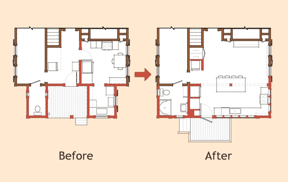 Although the resulting kitchen is much larger than the original, cozy sub-spaces are defined within the larger room, and original finishes are matched in order to make the room feel at home with the rest of the house.